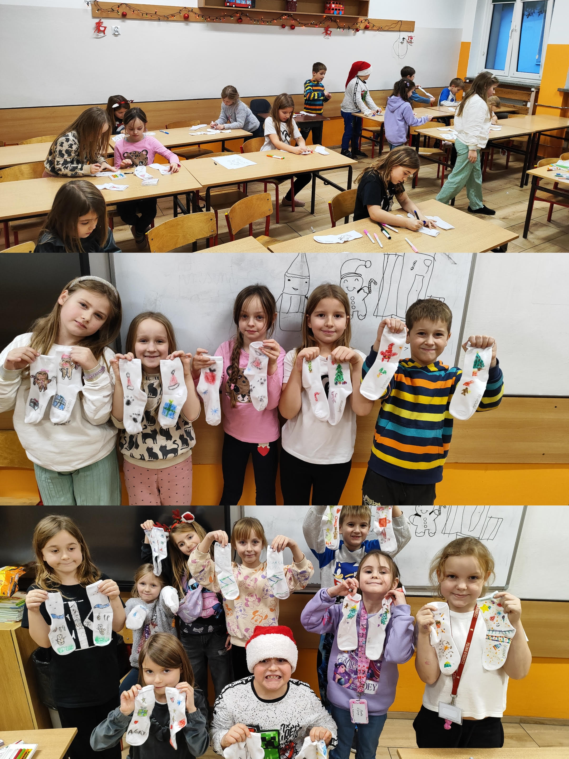 W minioną środę dla grupy chętnych uczniów klas I–III ze świetlicy w pawilonie odbyły się wyjątkowe warsztaty plastyczne, podczas których dzieci miały okazję spróbować swoich sił w malowaniu na skarpetkach.