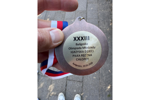 W ramach rozgrywek Bydgoskiej Olimpiady Młodzieży odbył się emocjonujący turniej piłki ręcznej chłopców z klas V i VI. W zawodach wzięły udział reprezentacje szkół podstawowych, które przez cały dzień rywalizowały o miejsca na podium, prezentując wysoki poziom sportowy, zaangażowanie oraz ducha fair play. Turniej od samego początku dostarczał wielu emocji. Mecze fazy grupowej były niezwykle wyrównane, a o awansie do kolejnych etapów często decydowały pojedyncze bramki. Nasza drużyna zaprezentowała się bardzo dobrze, pokazując skuteczną grę w ataku oraz solidną postawę w obronie. Dzięki zespołowej współpracy i determinacji udało się awansować do półfinału. W walce o finał przeciwnik okazał się nieco skuteczniejszy, jednak nasi zawodnicy nie stracili motywacji. W meczu o trzecie miejsce pokazali ogromną wolę walki i od pierwszych minut narzucili swoje tempo gry. Skuteczne akcje ofensywne, pewne interwencje bramkarza oraz dobra organizacja zespołu pozwoliły odnieść zasłużone zwycięstwo.