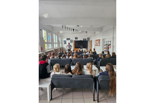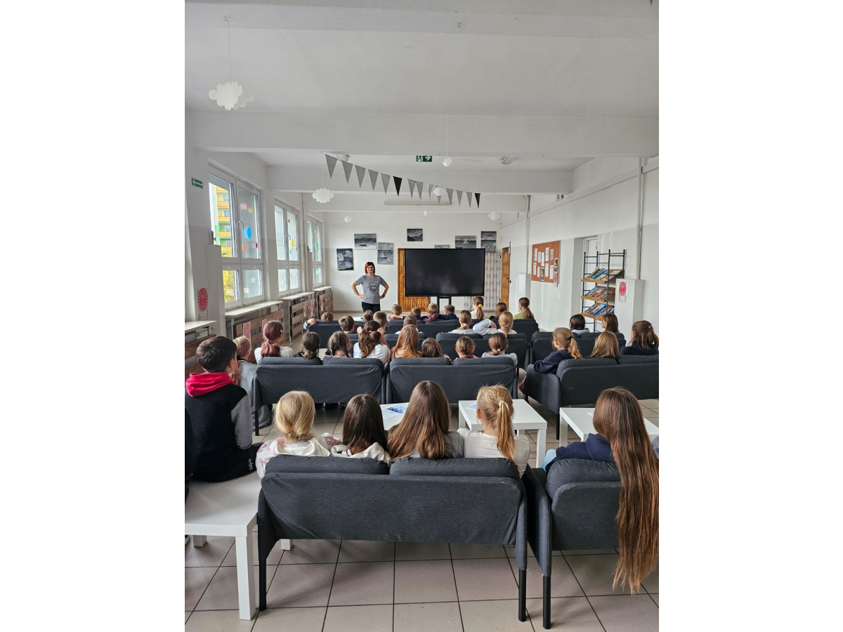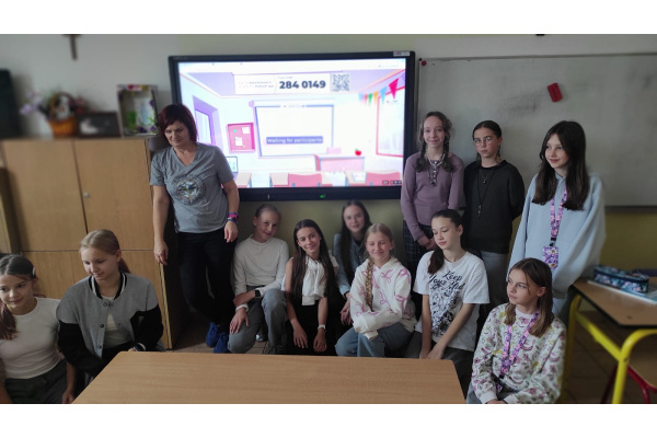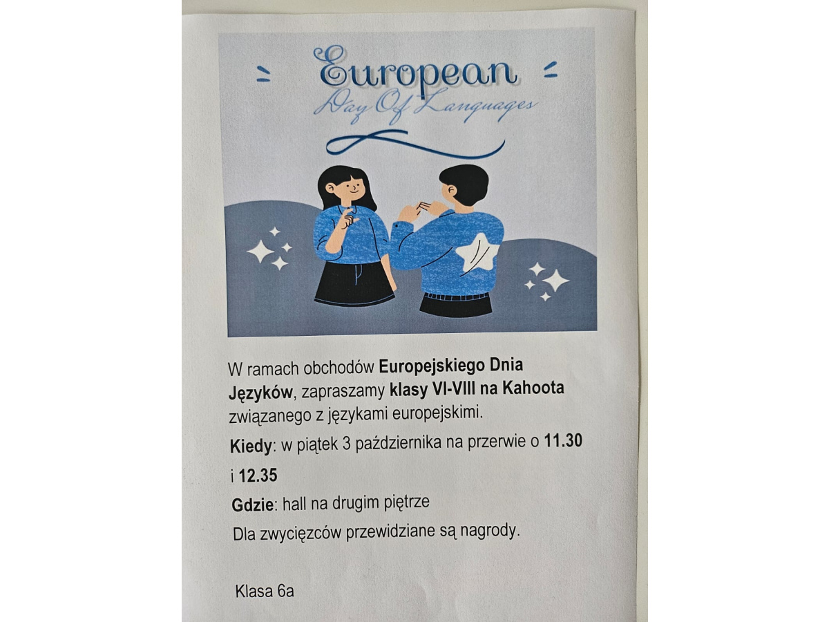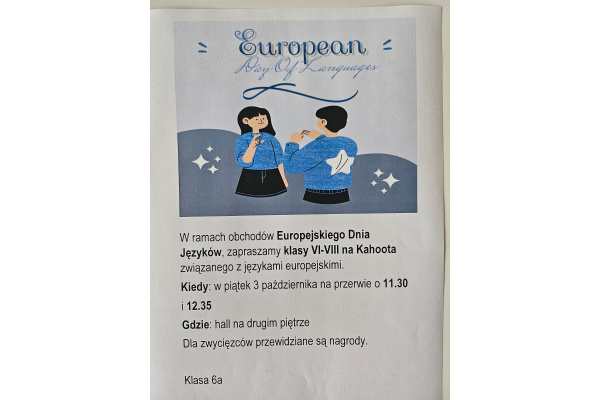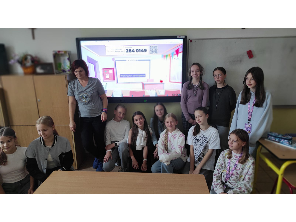 W ramach obchodów Europejskiego Dnia Języków, uczniowie klasy 6a wraz z wychowawczynią p. Iwoną Suszyńską przygotowali w piątek, 3 października, wyjątkową atrakcję – quiz Kahoot, w którym mogli sprawdzić swoją wiedzę o językach Europy. Na dwóch długich przerwach korytarze wypełniły się emocjami i duchem zdrowej rywalizacji. Uczniowie klas 6–8 z zapałem odpowiadali na 20 pytań, które okazały się nie tylko sprawdzianem wiedzy, ale też świetną zabawą.