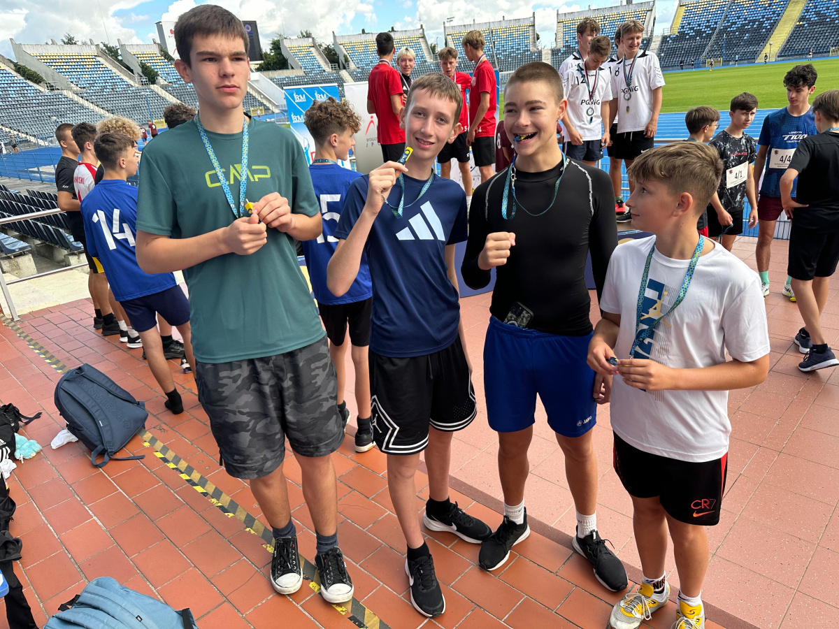 We wtorek (23.09.2025 r.) na stadionie Zawiszy w Bydgoszczy odbyły się zawody w biegach sztafetowych. Nasze reprezentacje zajęły 2. miejsce (sztafeta olimpijska dziewcząt - Igrzyska Młodzieży Szkolnej), 2. miejsce (sztafeta szwedzka chłopców - Igrzyska Dzieci), 3. miejsce (4 x 100 metrów chłopców - Igrzyska Dzieci), 5. miejsce (sztafeta szwedzka dziewcząt - Igrzyska Dzieci), 5. miejsce (sztafeta olimpijska chłopców - Igrzyska Młodzieży Szkolnej), 5. miejsce (4 x 100 metrów dziewcząt - Igrzyska Dzieci), 6. miejsce (4 x 100 metrów dziewcząt - Igrzyska Młodzieży Szkolnej), 8. miejsce (4 x 100 metrów chłopców - Igrzyska Młodzieży Szkolnej). Gratulujemy!
