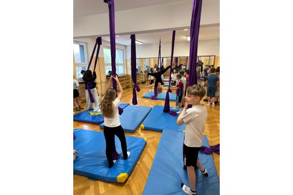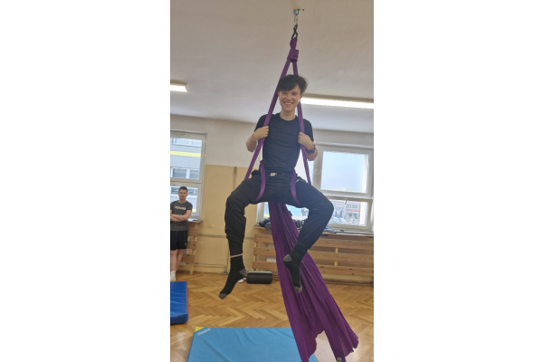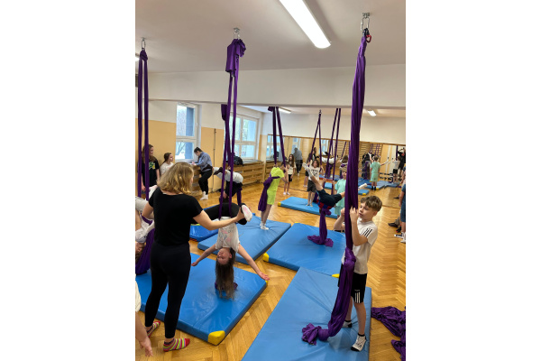 Niecodzienna lekcja wychowania fizycznego – gimnastyka w powietrzu na zwisających szarfach