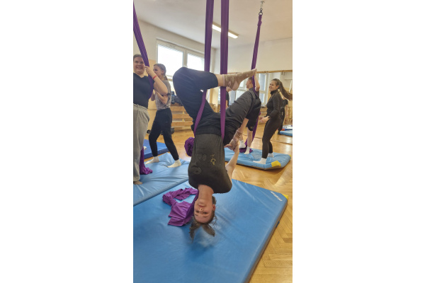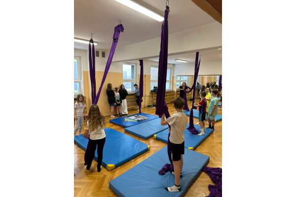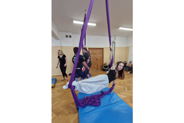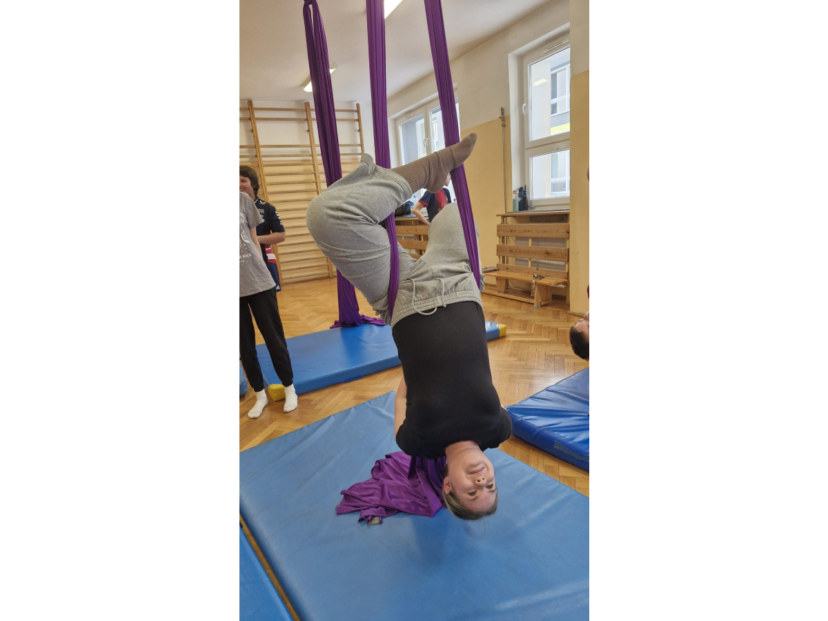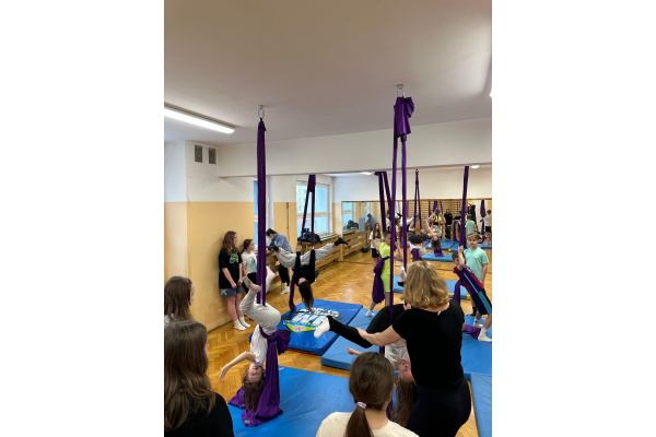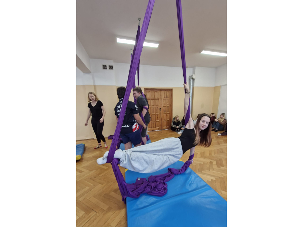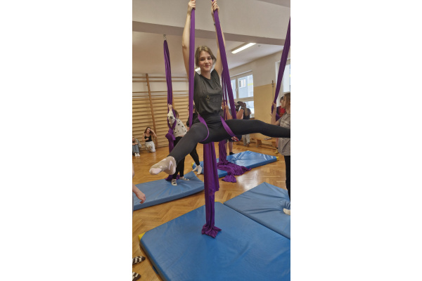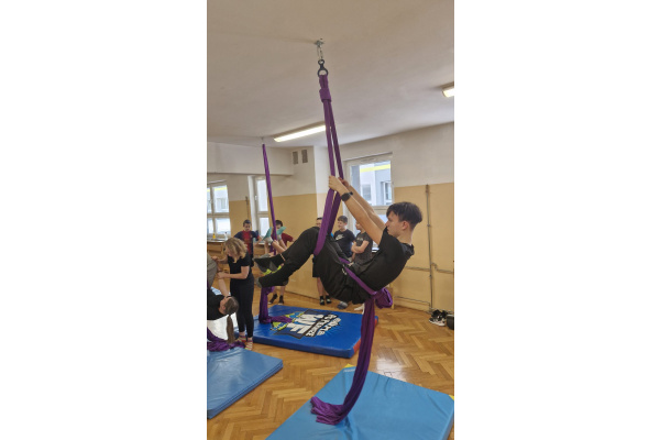 Niecodzienna forma zajęć miała także wymiar wychowawczy. Praca na szarfach uczyła zaufania – do sprzętu, nauczyciela oraz kolegów i koleżanek. Wspólne pokonywanie trudności integrowało grupę, a wzajemne wsparcie stawało się naturalnym elementem lekcji. Uczniowie, którzy na co dzień niechętnie uczestniczyli w ćwiczeniach, tym razem angażowali się z dużym entuzjazmem.